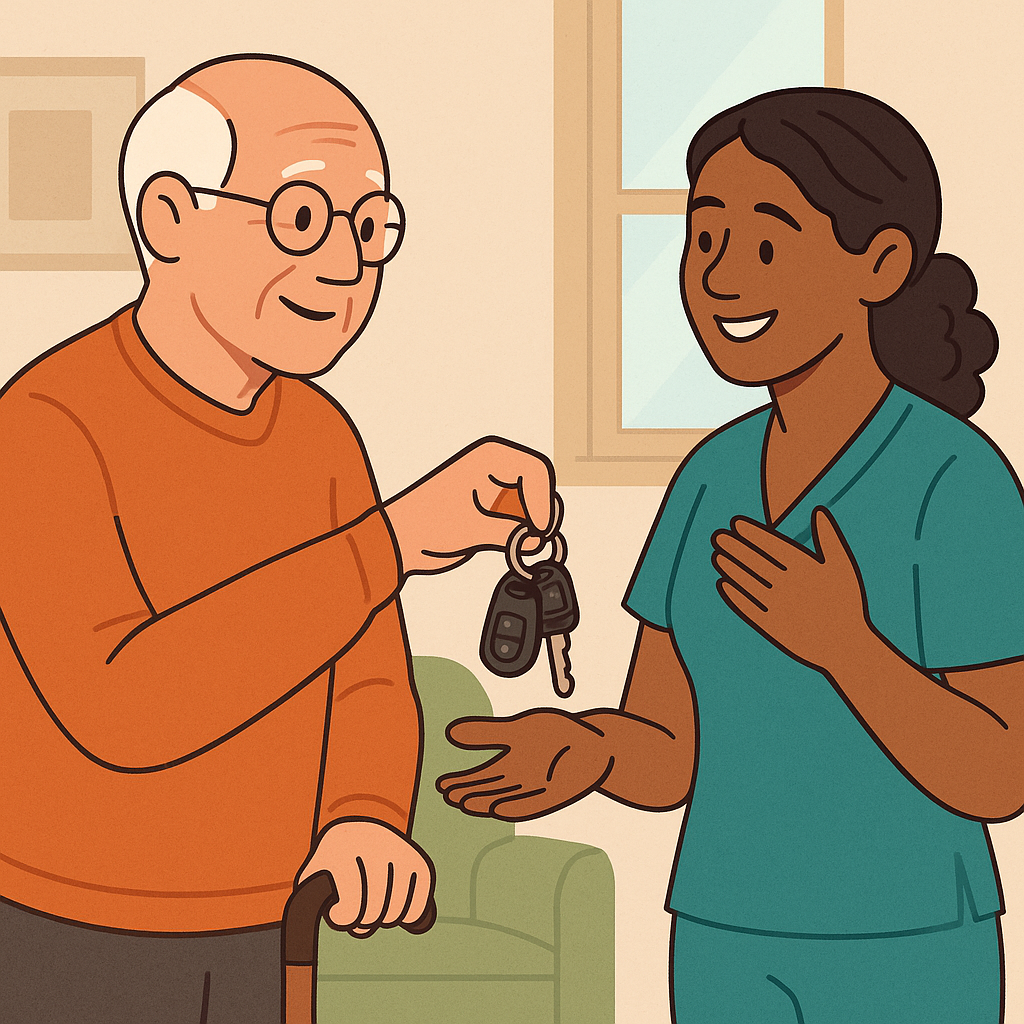 Present options before problems. Talk about rideshare apps, family driving rotations, or hiring a professional caregiver for errands. Showing that life won't stop without the car makes the transition easier.